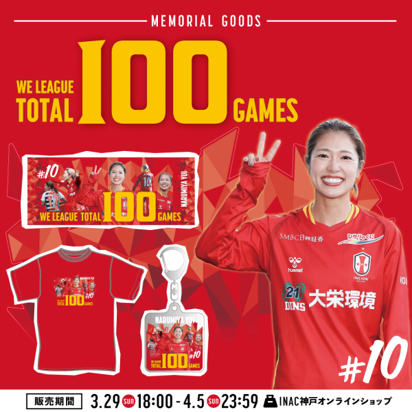 成宮 唯 選手 WEリーグ通算100試合出場 メモリアルグッズ受注販売のお知らせ